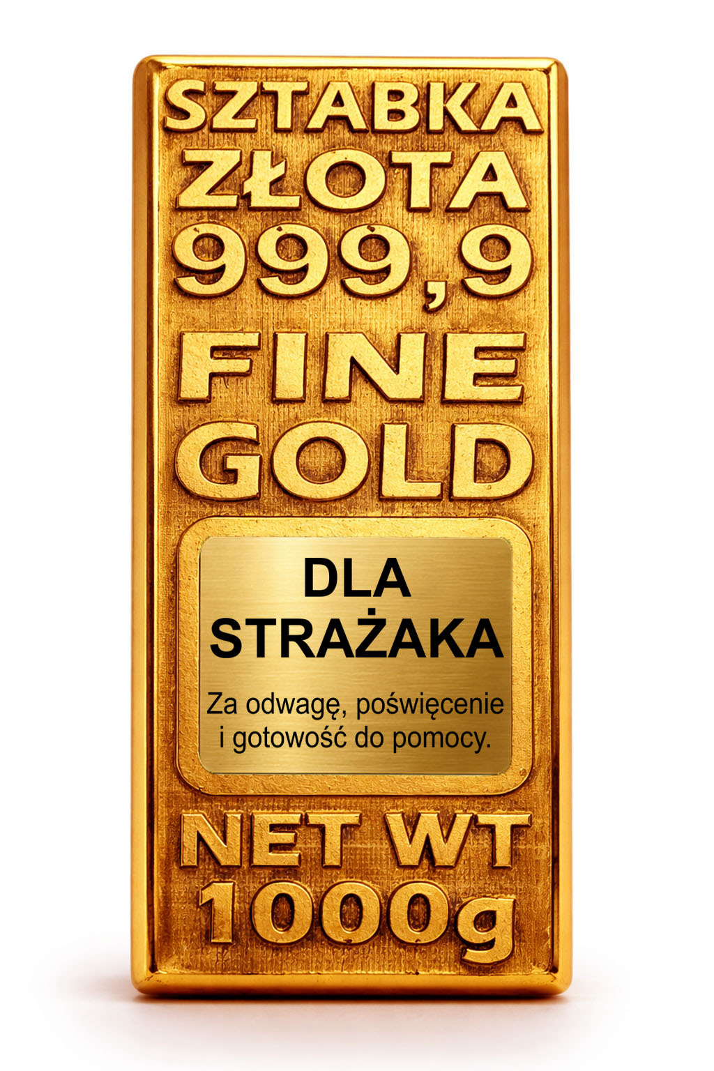 Ta złota sztabka to elegancki i symboliczny upominek, który podkreśla odwagę i poświęcenie oraz zostaje na lata.
