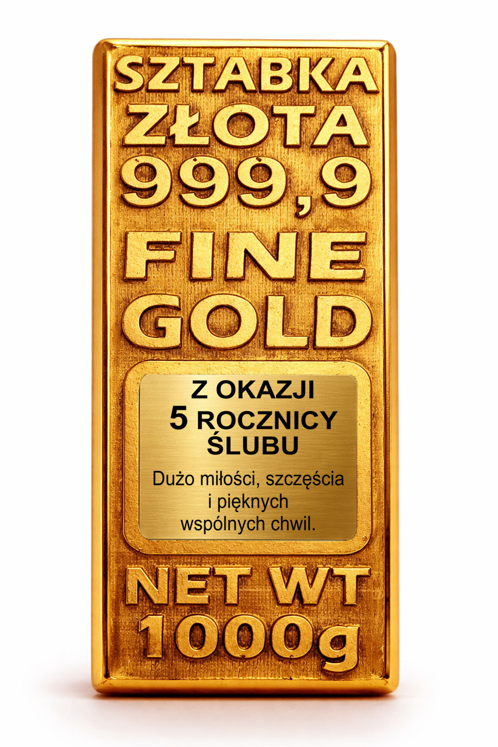 Ta złota sztabka to elegancki i symboliczny upominek, który podkreśla miłość i wspólne chwile oraz zostaje na lata.